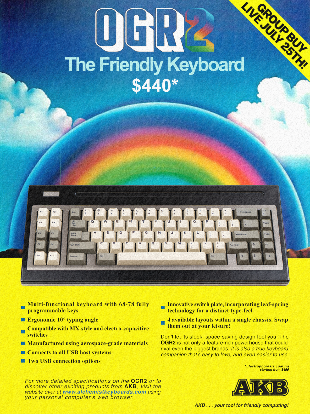 During the obsessive research phase before landing on the final layout and design I grew a real attachment to keyboard/computer design of the 80s and early 90s. Icherry-picked some features from my favourite boards as inspiration (G80-0832, G81-3077 & G80-0530), and combined them in a way that eventually become the OGR. I self-ran the group buy in 2022, for better or worse, and I'm grateful that the feedback from people who use them regularly since they shipped in 2023 has been wholly positive, so I've planned to run this again for quite some time.